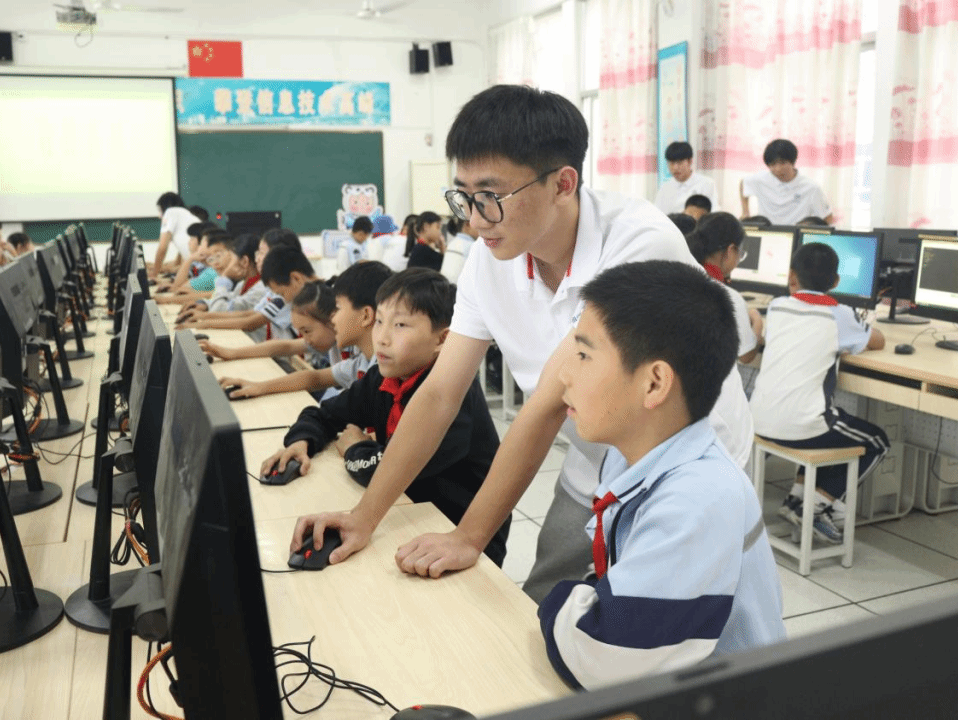 在掌握基础概念后,课程进阶至Scratch图形化编程环节,志愿者们领小学生们体验了趣味十足的海龟作图编程,同学们通过输入简单的代码指令,指挥屏幕上的“小海龟”爬行、转弯,绘制出五彩斑斓的图案。看到自己编写的代码成功运行,同学们脸上绽放出惊喜的笑容,眼中写满自豪。