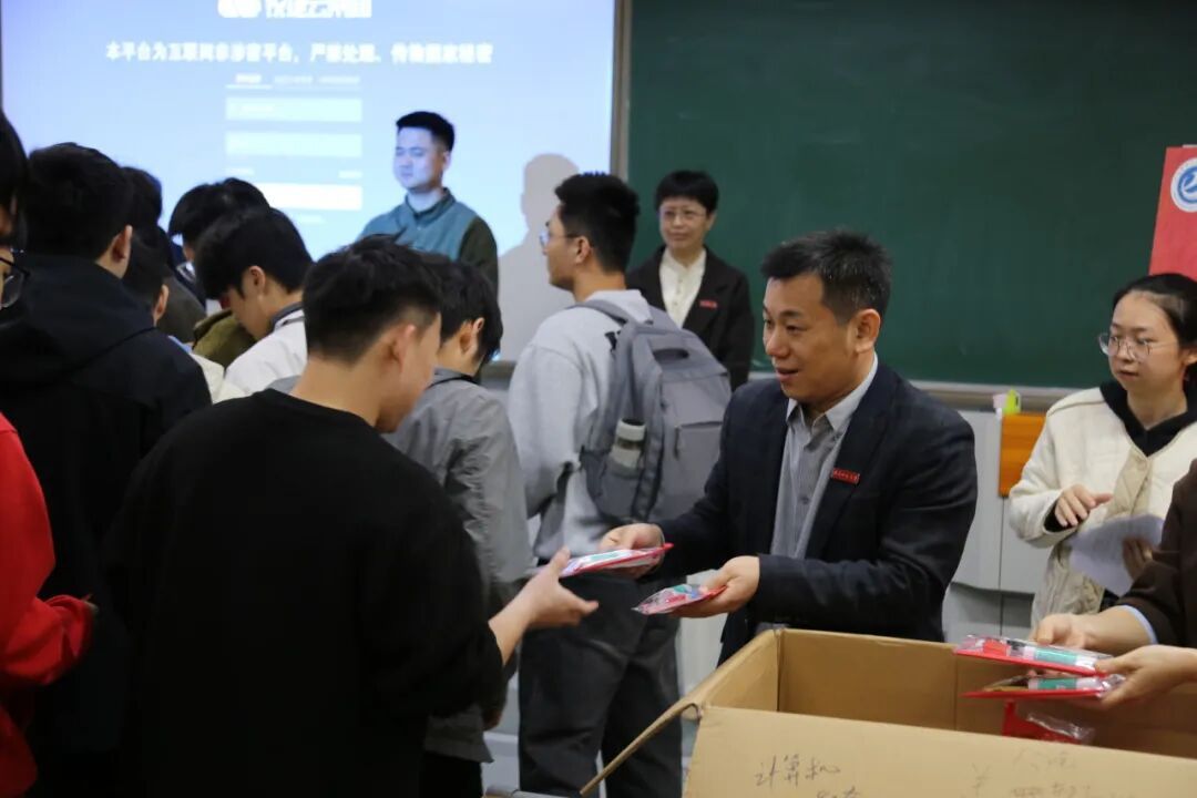 会后,学院领导老师为考研学子们送上考研文具礼包。