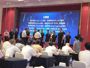 9月15日,2019年国家网络安全宣传周网络空间安全知识和安全技能竞赛(高校组“黑盾杯”赛项)在福建师范大学旗山校区举办。bat365官网L4K3战队(队伍成员:张江湖、黄希航、姚华勇,指导老师:周豫苹)获得了三等奖。 本次大赛由福建省委网信办、福建省教育厅、福建省公安厅联合主办,吸引了全省信息技术相关专业近240名在校大学生共80支队伍参赛。