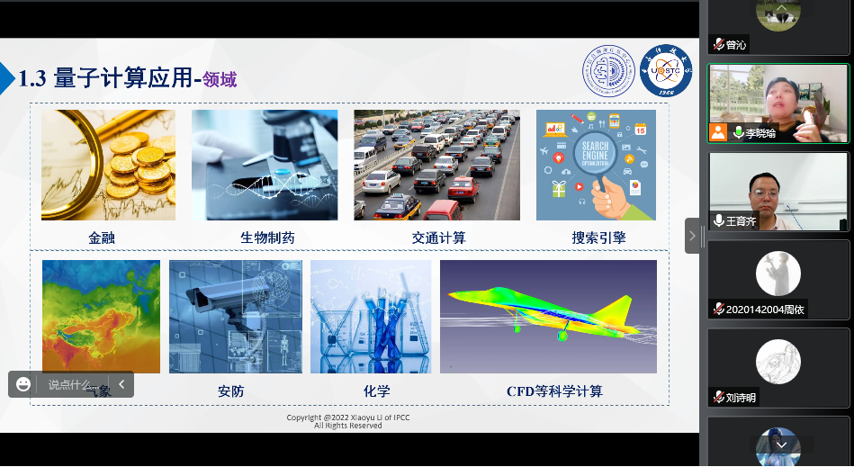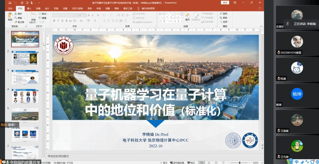 10月15日晚,电子科技大学李晓瑜副教授应邀为bat365官网师生做线上专题报告,报告题目为“量子机器学习在量子计算中的地位和价值”,本次报告由学院王育齐副教授主持。