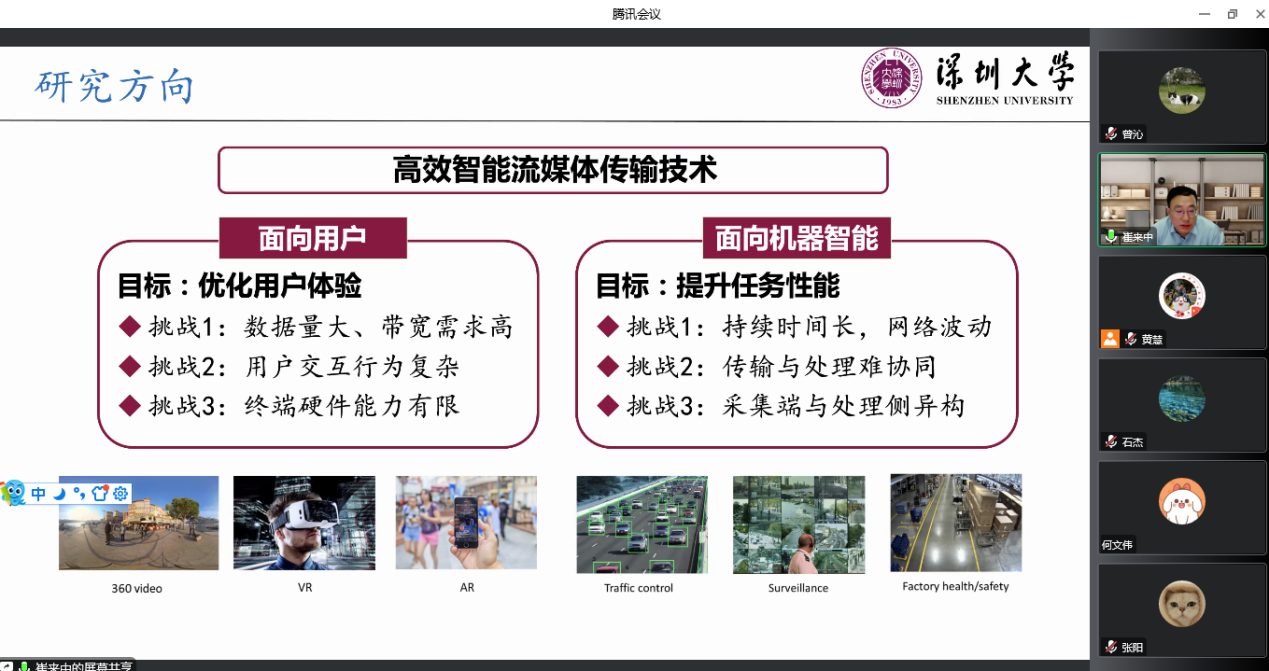 10月19日下午,深圳大学崔来中教授应邀为bat365官网师生做线上专题报告,报告题目为“交互视频智能传输技术”,本次报告由学院黄慧副院长主持。