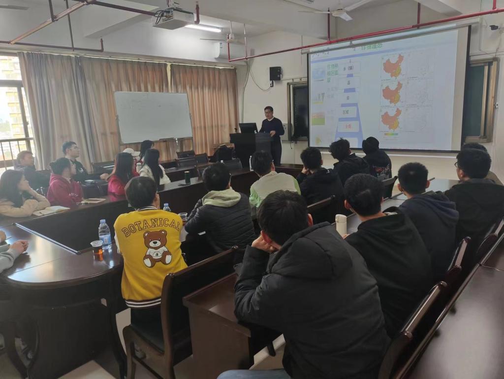 黄教授首先介绍了卫星遥感在各领域的广泛用途,以及借助卫星遥感对农作物的发育、长势和产量等要素的数据监测,使农作物避开各种环境胁迫。此外,还介绍了农业遥感与人工智能结合的国内外研究进度和先进成果,并对农业遥感和数据驱动模型更深层次的结合进行了展望。报告后,黄教授同与会师生就农业遥感的发展趋势等学术问题进行了互动和交流。最后,方老师代表学院对黄教授的精彩报告表示衷心的感谢。