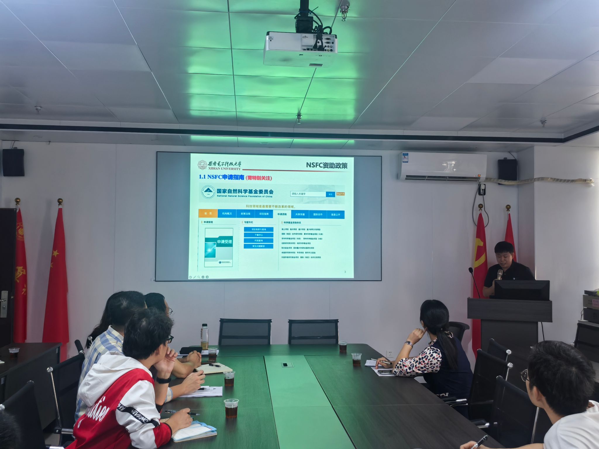 为提升2026年度国家自然科学基金项目的选题与申报书撰写质量,提高项目申报成功率,11月6日下午,bat365在线中国官网登录入口邀请西安电子科技大学王剑锋教授作“国家项目申报辅导讲座——科研项目申报书的撰写”专题辅导报告。报告由黄慧副院长主持,学院相关专任教师参加会议。