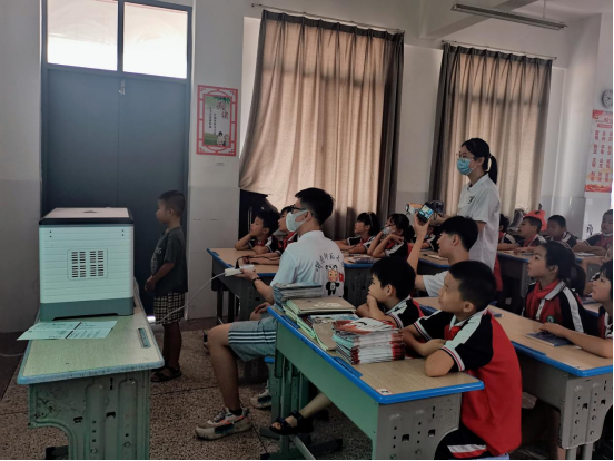 7月7日上午,“帮帮团”来到了漳浦县长春小学,向小朋友们展示带来的3D打印机和微型投影仪,让他们观看3D打印机打印过程,近距离感受科技魅力,了解当今社会科技的发展,借此机会在小朋友心中埋下科技的种子。展示之余,“帮帮团”以分组的形式对小朋友开展一对多的作业辅导,为小朋友们答疑解惑。