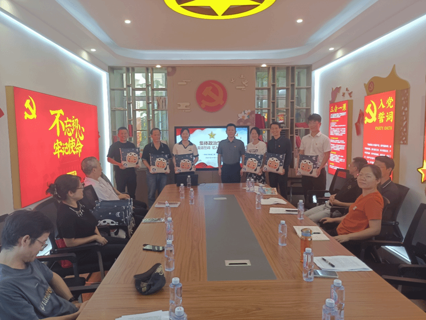 随后,党支部开展集体政治生日主题活动。活动中,党支部书记带领支部成员重温入党誓词,回顾政治生涯,激励前行步伐,并赠送学院文创产品“党e宝抱枕”。